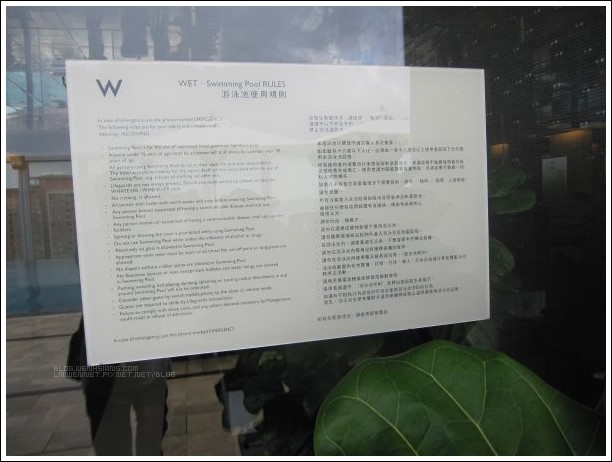 由於昨天已經有看到游泳池使用規則了,所以我們今天穿著酒店提供的浴衣及拖鞋上樓。(我們是住二人房,浴衣一開始卻只有一件,所以只好打電話請服務生再送一件來)現場也有房客是穿T恤、短褲、夾腳拖鞋進場的。