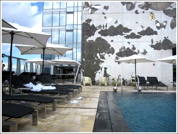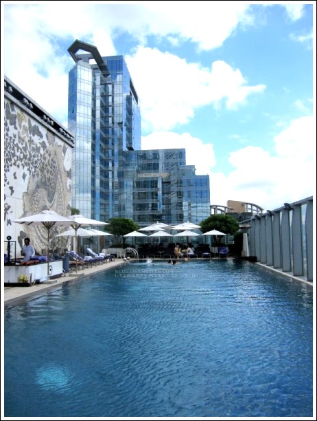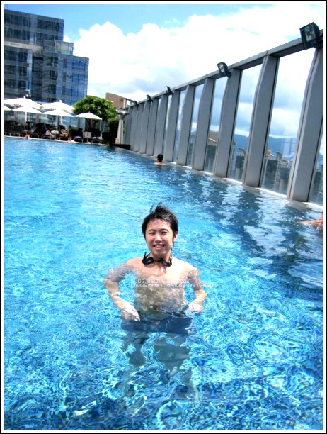 盥洗完畢,第一件事是把昨天在ELEMENTS的麵包店買來當宵夜的麵包,變成早餐吃掉。第二件事,就是我一直期待的,到樓頂的露天游泳池游泳。