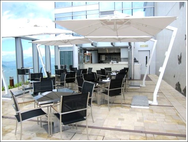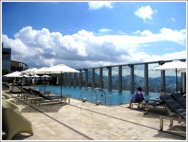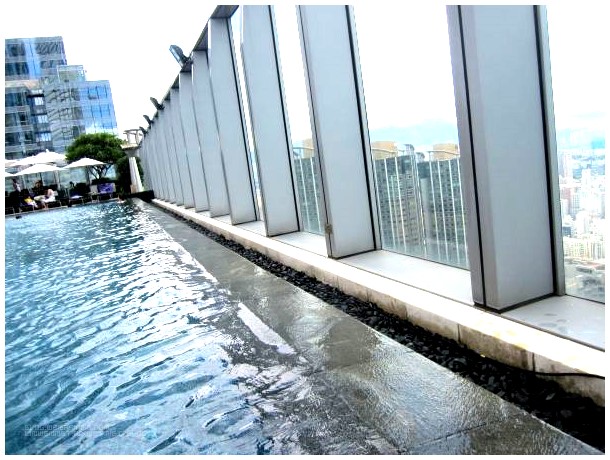 ▲ 游泳池的邊緣,有一小條石子路,再過去就是76樓往下看的都市風景啦。