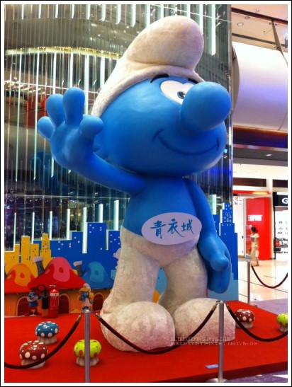 ▲ 不知道是不是因為最近電影「藍色小精靈」正在宣傳,所以青衣城裡面有一隻巨大的藍色小精靈雕像,很像吉祥物。
