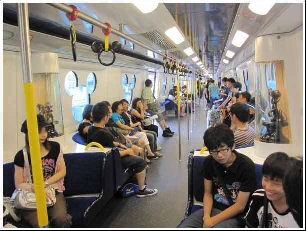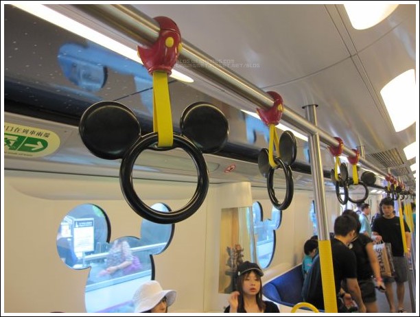 ▲ 車廂內,連握把都是迪士尼米老鼠的造型,好想敲一個帶回家喔!(掛在房門上當門扣?)