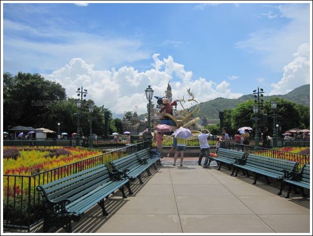 從旁邊就可以進去迪士尼樂園的庭院囉!說「庭院」的原因是因為,這裡還不是收票口啊~還要再走一段路才算真正進入迪士尼樂園。