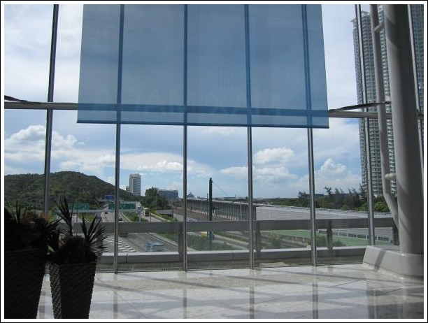 遮光簾緩緩上升,左右窗簾也緩緩收縮,香港早晨的陽光一點一滴的射進我們房間裡。早安,香港!