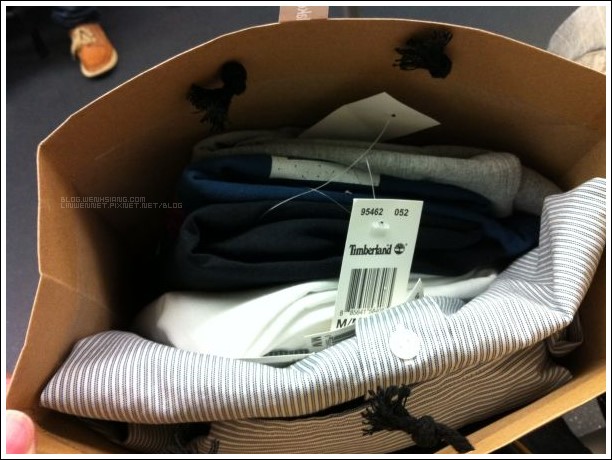 但我可不是全部都買來自己穿的啊,早在挑選的時候就決定好了,因為還算有點價值,所以我只打算送給比較好的朋友。白色的T恤送給Baker,他喜歡白色;藍色的T恤送給Eric,他很節省,不太可能會買Timberland這麼高價位的衣服。:P(但在東薈城名店倉買,就不算高價位啦!很划算!)