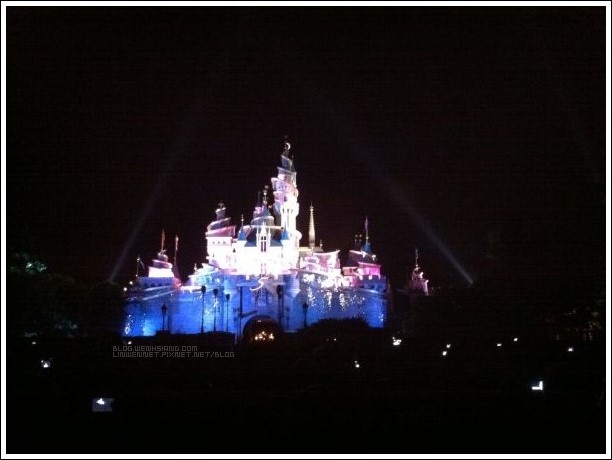 時間來到晚上8點半,睡美人城堡在廣播聲下開始了點燈儀式。半個小時之後,就是煙火秀了。