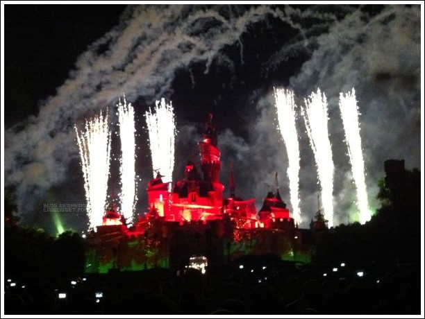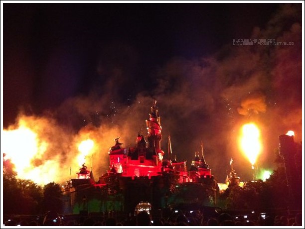 ▲ 最後的煙火很壯觀,在城堡兩旁發射大蓬的火焰,那火焰的熱度,讓遠在廣場前的我們都可以感受到熱浪。