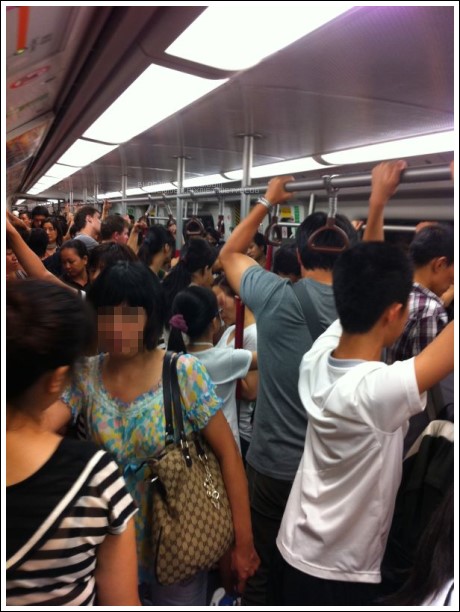 我發現,中東人還是不知道哪一國黑皮膚的外國人也是一樣,有著香港人良好的乘車習慣(?),所以站在最前面的我們,打從一開始就不指望會有座位可以坐,只求有個安身之處即可。